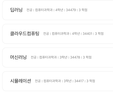 사실 학년은 수강 신청시에는 크게 고려하지 않았다. 근거 없는 자신감 + 인공지능 관련 과목을 좀 더 담으려고 하다보니 막무가내로 담은 경향이 있는데 다행히 후회보다는 안심이 된다.